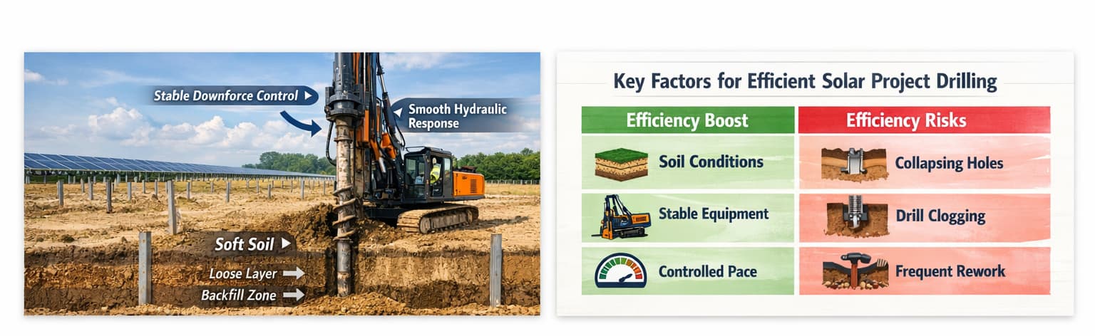 If you’re planning a solar project on soft soil—or facing inconsistent drilling efficiency and excessive rework—we can help you evaluate whether your current equipment is suitable and explore more efficient, stable solutions tailored to your soil conditions, pile types, and project pace.